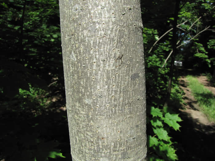 The bark is light to silvery gray and fairy smooth on young trees. With age, the bark turns darker, sometimes a near-black, and develops long and deep narrow ridges.