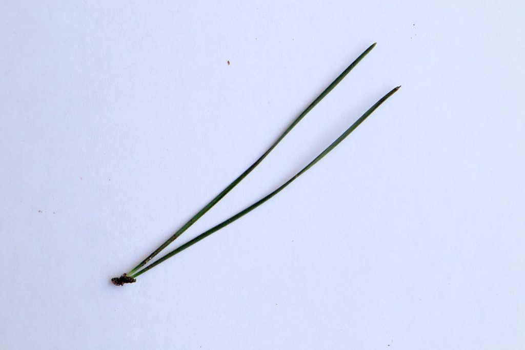- The needles occur in pairs and are generally 10-15 cm long and stiff. The edges are slightly serrated and can be straight or curved
