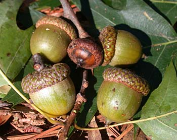- The acorns are a major food source for many mammals including white-tailed deer, black bears, squirrels and chipmunks